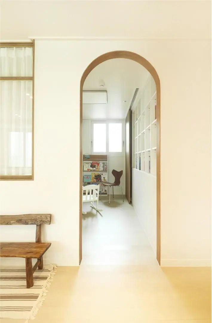 进入书房的入口的拱门,边框是亮点,原木色包边增强层次感!